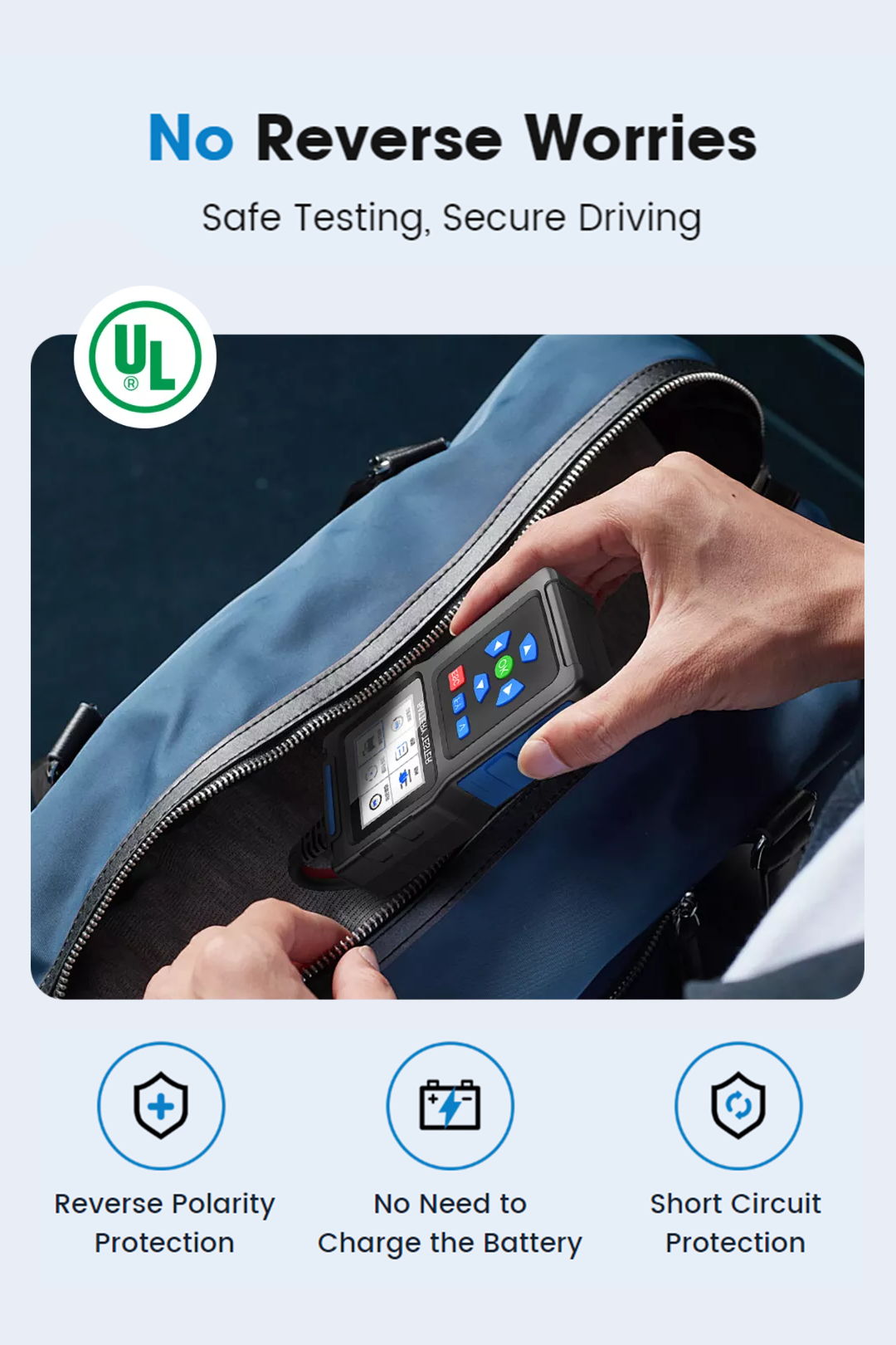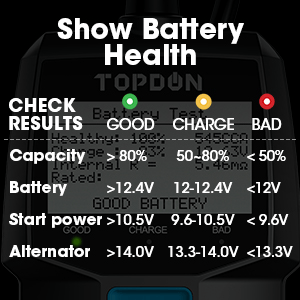 Displays accurate test results in seconds,including the battery test, the health status test, and the diagnosis of both starting and charging systems, cranking test, charging test, and other functions. it's your Private battery doctor.