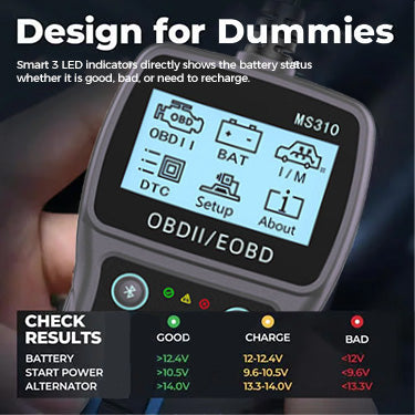 BT100 Battery teste will provide the technician, professional and DIYer, with critical information about battery health status by identifying battery and charging problems quickly and accurately. And self-diagnose will save you time & money
